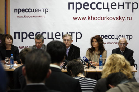 Колрреспонденты средств массовой информации собрались в редакции «Особой буквы», чтобы послушать адвокатов Ходорковского — Юрия Шмидта, Вадима Клювганта и Наталью Терехову и Платона Лебедева — Константина Ривкина и Елену Липцер.
