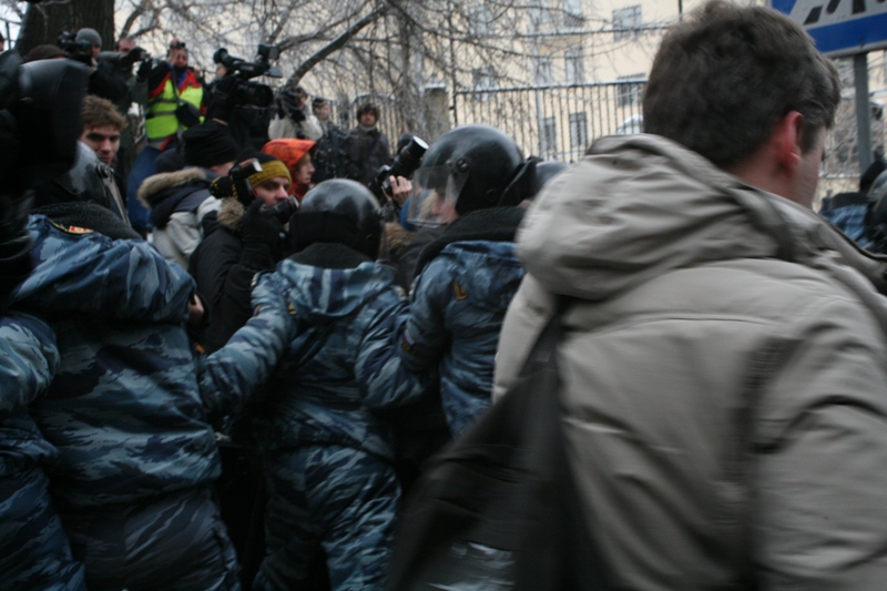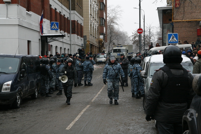 Однако после того, как вмешался ОМОН, начав задержания митингующих, их число значительно сократилось. В настоящий момент СМИ сообщают о десятках задержанных. Об их количестве говорит тот факт, что от здания суда уже отъехал полностью заполненный людьми автозак.