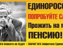 Нападавшие, вооруженные ножами, окружили микроавтобус, в котором находились альпинисты — парень и девушка, и силой забрали у них 12 широкоформатных плакатов. До этого альпинисты успели смонтировать на арендованный «Справедливой Россией» рекламный щит на улице Софьи Перовской возле дома №14 два баннера с изображением пожилой женщины и надписью «Единороссы, попробуйте сами прожить на мою пенсию».