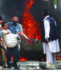 Свидетели видели двух подозрительных людей, предположительно заложивших взрывчатку под двери торговой фирмы. Стражи порядка по горячим следам ищут исполнителей теракта, сообщает полиция Лашкаргаха.