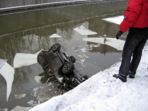 Машина Audi А4 в среду вечером пробила бетонное ограждение и упала в реку Яуза на востоке Москвы.