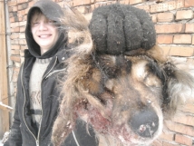 На первом снимке Сергей замахивается топором на лежащую собаку, на последующих, — не скрывая своего лица, позирует с отрубленной головой животного. «Я убиваю, чтобы не сдохнуть от тоски!» — так Сергей комментирует свой поступок.