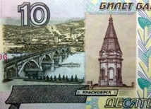 Сегодня в Красноярске установлен памятник десятирублевой купюре — на городской брусчатке лежит случайно оброненная кем-то «десятка». На банкноте, выпуск которой уже прекращен, были изображены достопримечательности города: Коммунальный мост, часовня Параскевы Пятницы и Красноярская ГЭС.