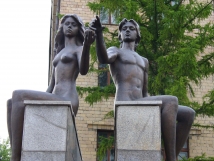 Хулиганы опрокинули с мраморного постамента бронзовые фигуры Адама и Евы. При этом у скульптуры прародительницы откололась рука.
