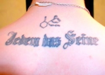 Житель Ногинска, выгуливавший собаку в лесополосе, наткнулся на фрагмент человеческого тела и немедленно сообщил о страшной находке полиции. Вскоре личность убитого была восстановлена, и помогла в этом татуировка Jedem das Seine («Каждому свое»). Такая надпись была помещена над воротами концентрационного лагеря «Бухенвальд», тату с этими словами очень популярна у современных нацистов.