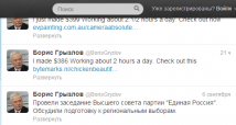 По всей видимости, тем удалось подобрать пароль к блогу, в результате чего в микроблоге председателя высшего совета «Единой России» Бориса Грызлова появились две записи на английском языке, рекламирующие возможности легкого заработка в Интернете.