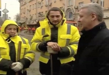 В размещенном на сайте правительства Москвы фильме об объезде Собяниным центра Москвы есть сюжет, где мэр выходит к радостно встречающим его дворникам, здоровается с ними за руку и беседует.