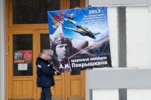 При этом на входе в ДК им. Октябрьской революции на крупном плакате с текстом «2013 — Год трижды Героя Советского Союза, почетного жителя г. Новосибирска, маршала авиации А.И. Покрышкина» был изображен другой военный летчик, тоже трижды Герой Советского Союза, маршал авиации Иван Кожедуб, сообщают «НГС Новости». Помимо Кожедуба на плакате изображен штурмовик Ил-2, на котором летчики-истребители Покрышкин и Кожедуб никогда не летали.