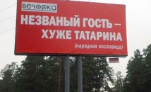 11 мая в УМВД России по городу Чите поступило телефонное сообщение о том, что на улице Володарского производится установка рекламного баннера с текстом экстремистского содержания. Для проверки информации на место выехала следственно-оперативная группа. Установлено, что размещением баннеров занимается рекламная фирма, в которую из читинской газеты поступил заказ на установку рекламных щитов с русской пословицей «Незваный гость хуже татарина». По данному факту проведена проверка, опрошены работники рекламной фирмы. Подобные баннеры размещены на других улицах города Читы. Было установлено, что признаков экстремизма в тексте не содержится, передает сайт УМВД России по Забайкальскому краю.