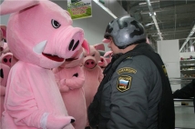 Как только администраторы заметили «хрюш», торговая точка закрылась для покупателей. Продавцы-таджики стали кричать: «Русских надо бить», «Русские не хотят работать». Одному из волонтеров разбили камеру, а у второго отобрали мобильный. На место потасовки были вызваны полицейские. Всех участников потасовки — пятерых активистов «Хрюш» и двоих сотрудников продуктового магазина — забрали в полицию.