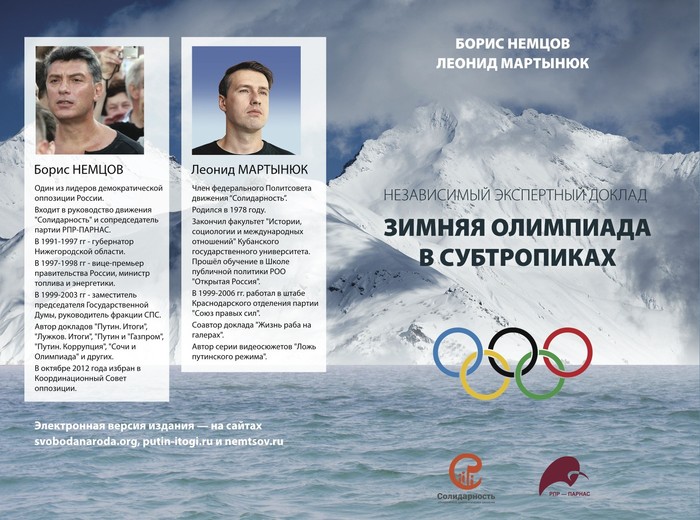 Доклад озаглавлен «Зимняя Олимпиада в субтропиках». Подготовку к Олимпийским играм в Сочи авторы назвали «чудовищной аферой в истории современной России».