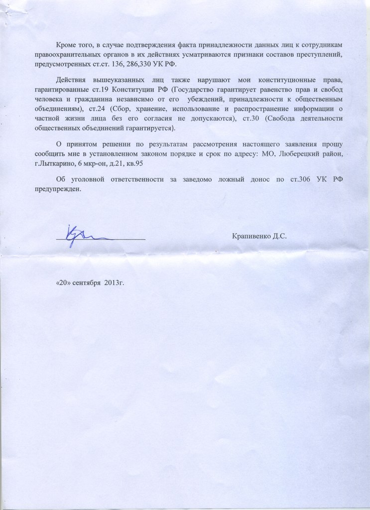 «Если ты не будешь с нами сотрудничать, то мы приедем к тебе на учебу, наденем тебе пакет на голову, наручники на руки, погрузим в машину и увезем в лес, и ты там пропадешь. В наше время люди, отказывающиеся сотрудничать с нами, часто пропадают без вести», — цитирует Крапивенко сотрудников МВД.