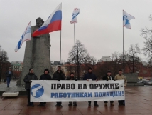 Участники требовали пересмотреть правоприменительную практику в отношении сотрудников правоохранительных органов, применивших табельное оружие при задержании преступников.