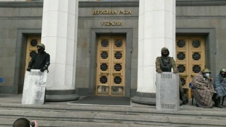 В настоящий момент весь правительственный квартал в Киеве, в том числе и здание Рады, охраняется революционными силами.