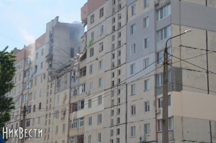 По свидетельствам очевидцев, взрывом разворотило четыре верхних этажа, идет дым. Во всех окнах дома выбиты стекла.