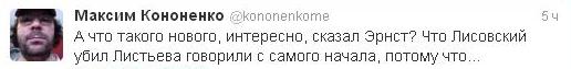 Почему-то обсуждается одна сторона вопроса — о журналистской этике. А речь ведь совсем о другом. Никто не ставит под сомнение слова Эрнста. Оказывается все ЗНАЛИ (М. Кононенко), кто заказчик убийства Листьева. Дело — не закрыто. У нас СК — только за «развозжаевыми» охотится?.А преступник спокойно отсиживаеся в СовФеде? СК заведёт (или возобновит?) уголовное дело?. Главная задача журналиста — публиковать сведения, важные для страны и не раскрывать источник. Представьте аналогичную ситуацию с другими террактами. Молчать — преступление!