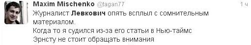 «Коли сказал об Эрнсте, скажу и о Левковиче. Гаже всех, конечно, в этой истории правдоруб-журналист и сайт «Сноб», выпустивший его на арену. Версия про Лисовского это тот секрет Полишинеля, который широко обсуждается уже второе десятилетие. Теперь вот Левкович решил слить разговор не под запись «из-за общественно-политической важности этой информации». Ага. Лев Толстой, «Не могу молчать». Где тут информация? Ее круглый ноль. Трафик, клики и лайки, в которых редакции надо отчитываться перед спонсором, конечно, полезны для стабильности зарплат, но на общественно-политическую важность это не тянет. Она, однако, имеет место быть. Публичных свобод у нас давно нет, но непубличные оставались. Теперь, когда «разговоры не под запись» сливаются в печать, заговор молчания быстро распространится на кулуары — кому ж охота оказаться в дурацкой роли Эрнста? Видимо, у свободолюбивых журналистов такая судьба — искоренять последнюю свободу».