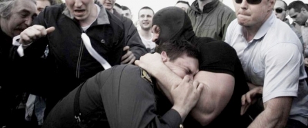 Опознали Лузянина по развитой мускулатуре. Есть фото, где человек в маске, габаритами его напоминающий, душит полицейского.